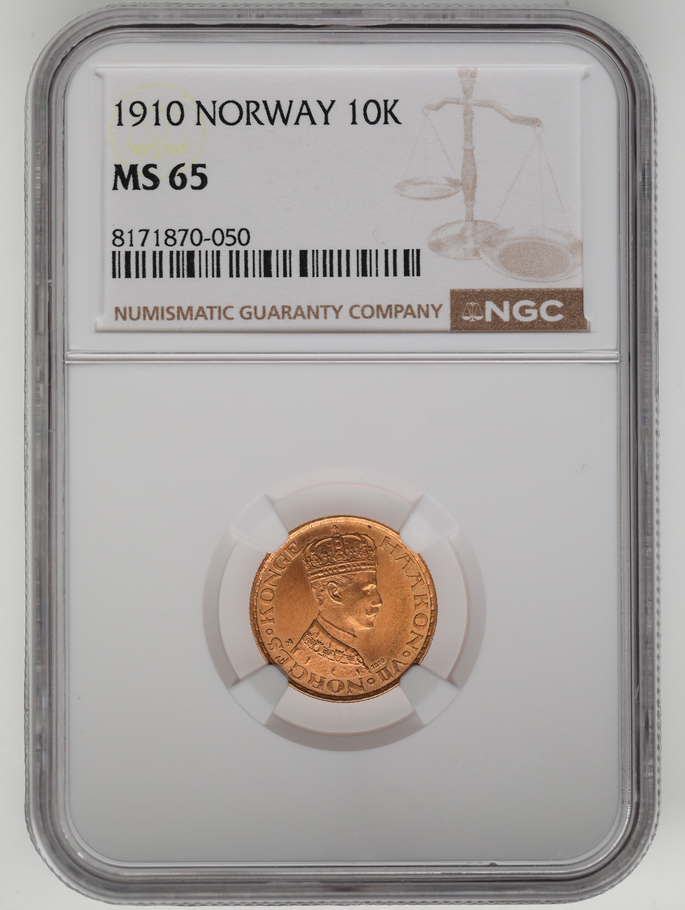 NORWAY. Haakon VII. 10 Kroner 1910. NGC MS65.