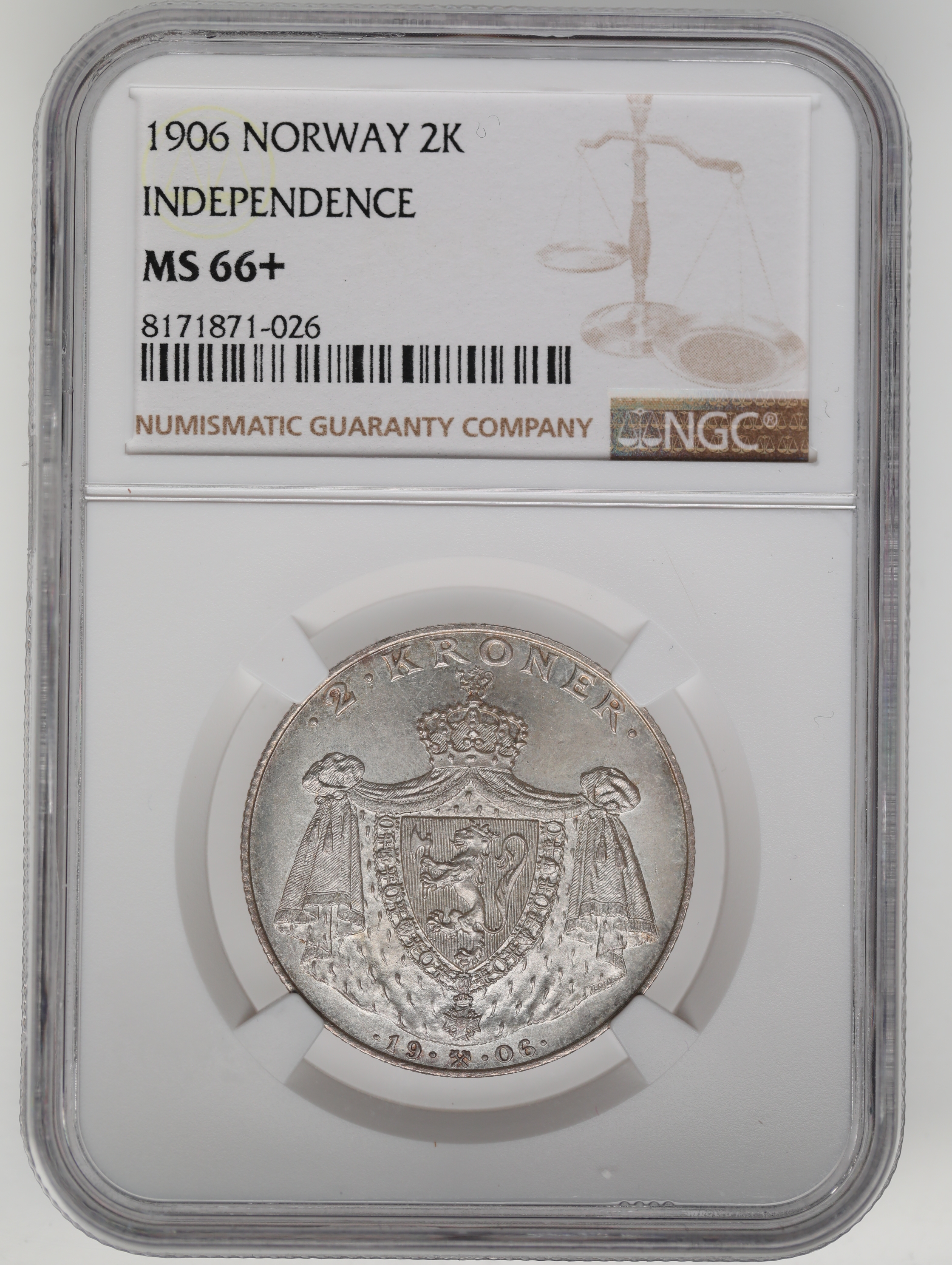 NORWAY. Haakon VII. 2 Kroner 1906. NGC MS66+.