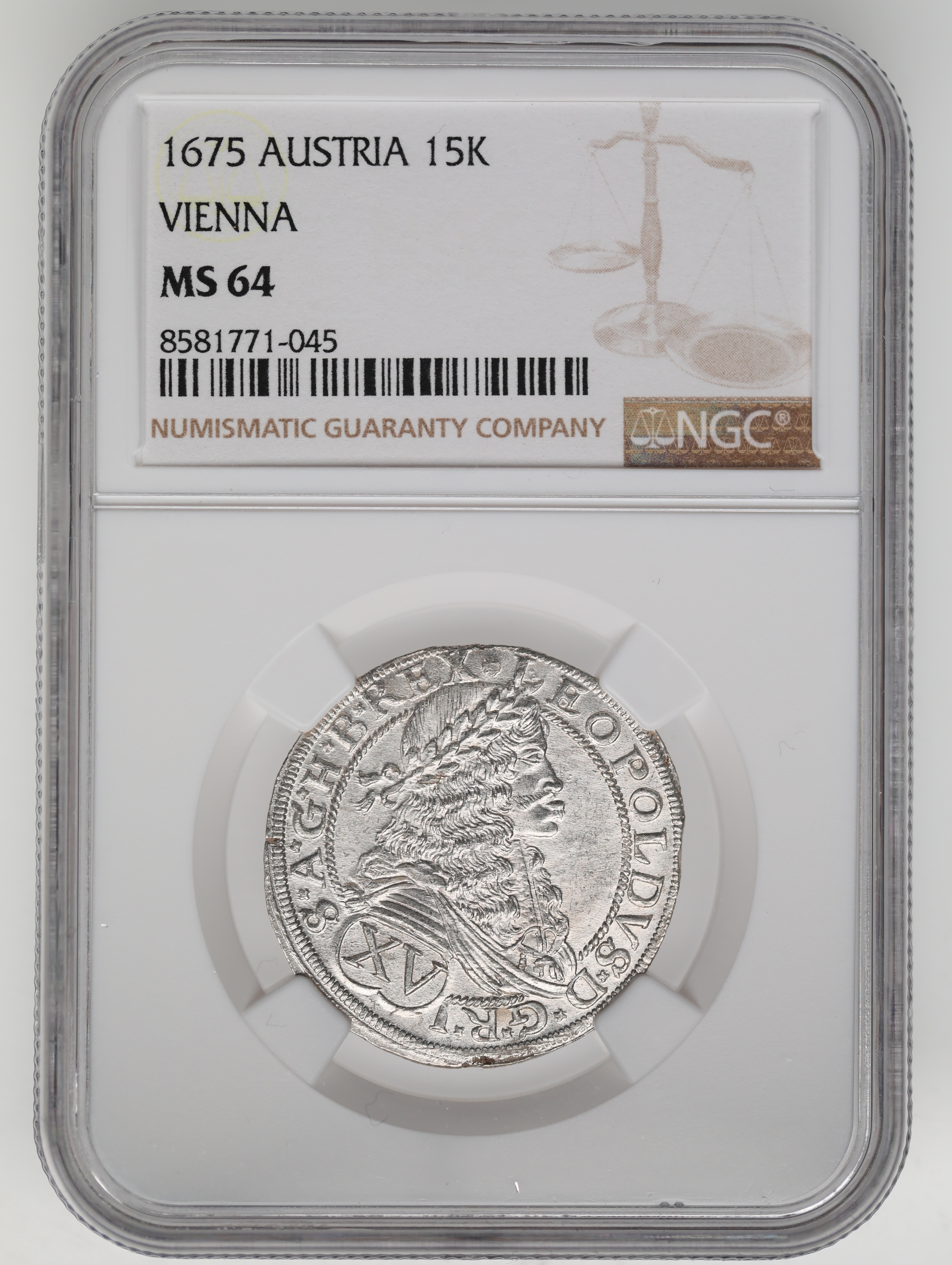 AUSTRIA. Leopold I. 15 Kreuzer. 1675. MS64.