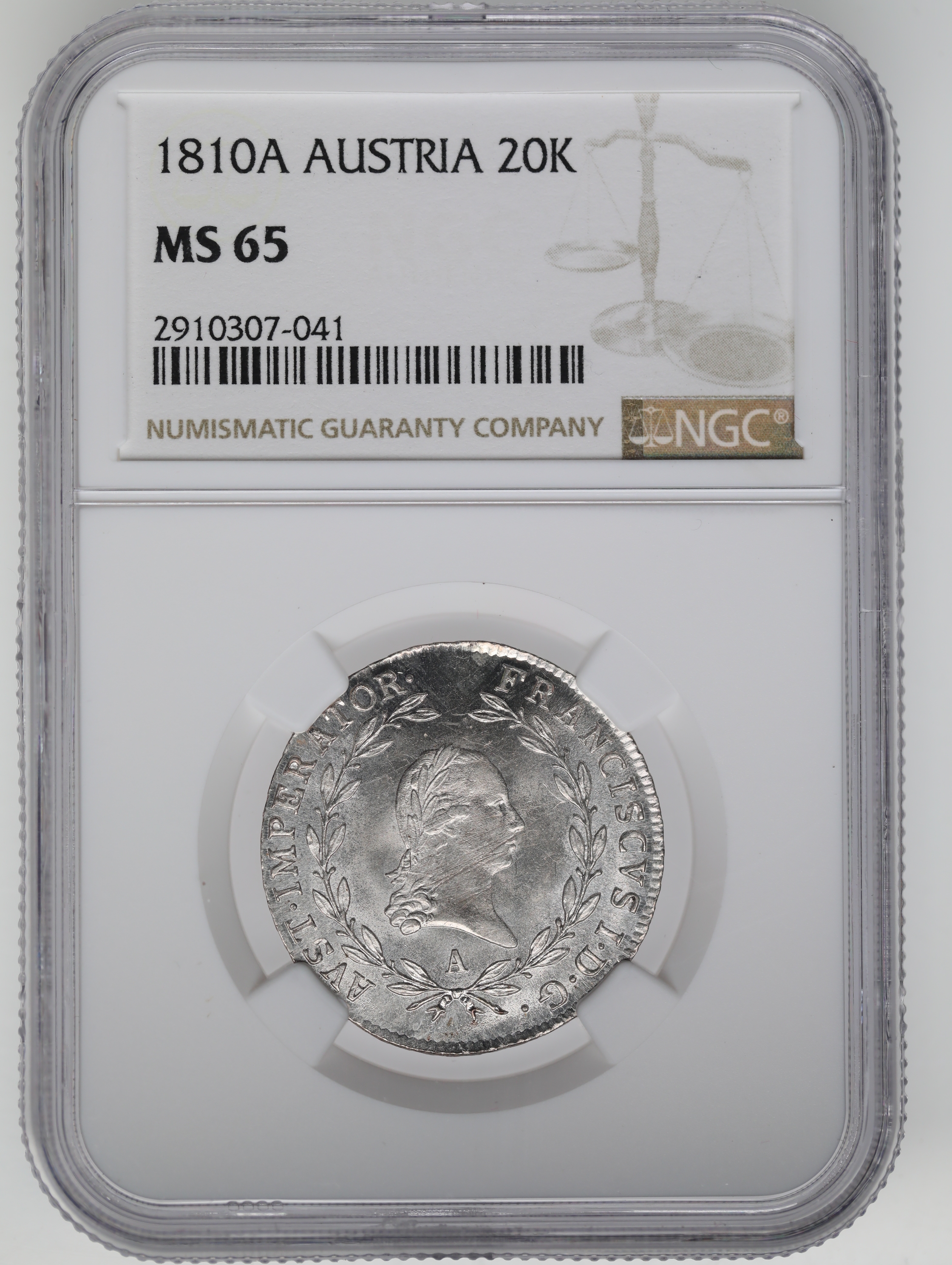 AUSTRIA. Franz I. 20 Kreuzer. 1810-A. MS65.
