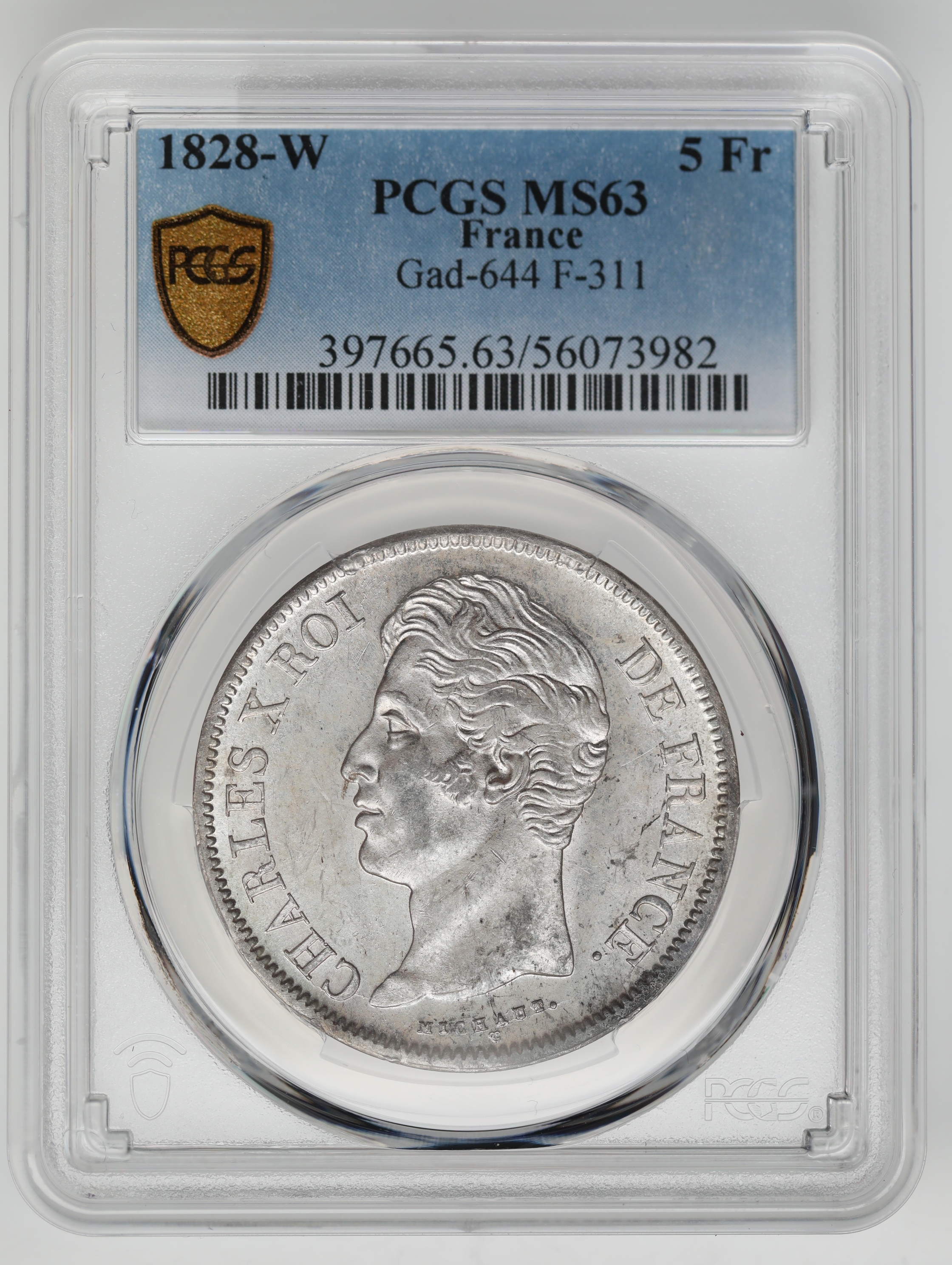 FRANCE. Charles X. 5 Francs. 1828-W. MS63.