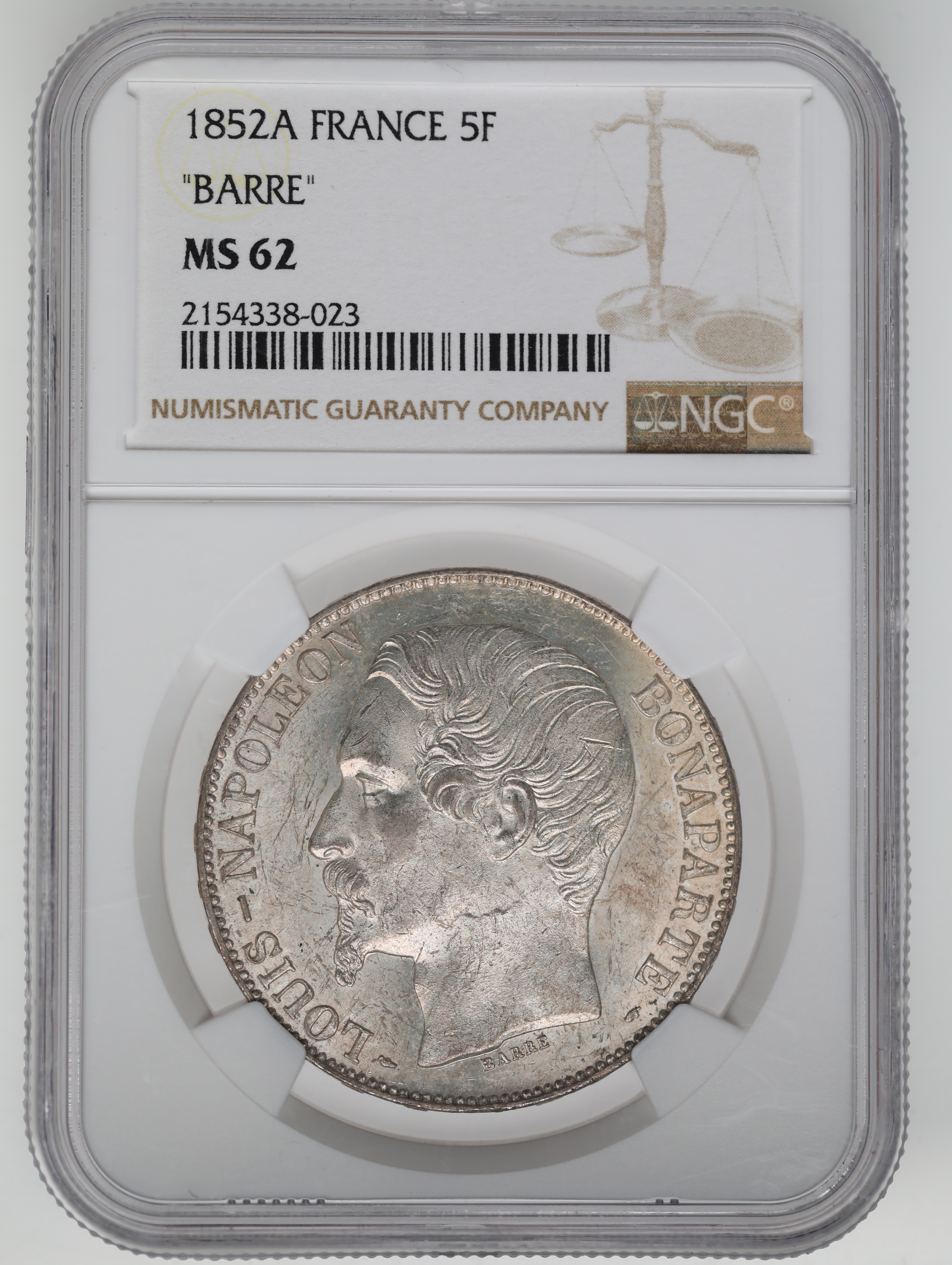 FRANCE. Napoleon III. 5 Francs. 1852-A. MS62.