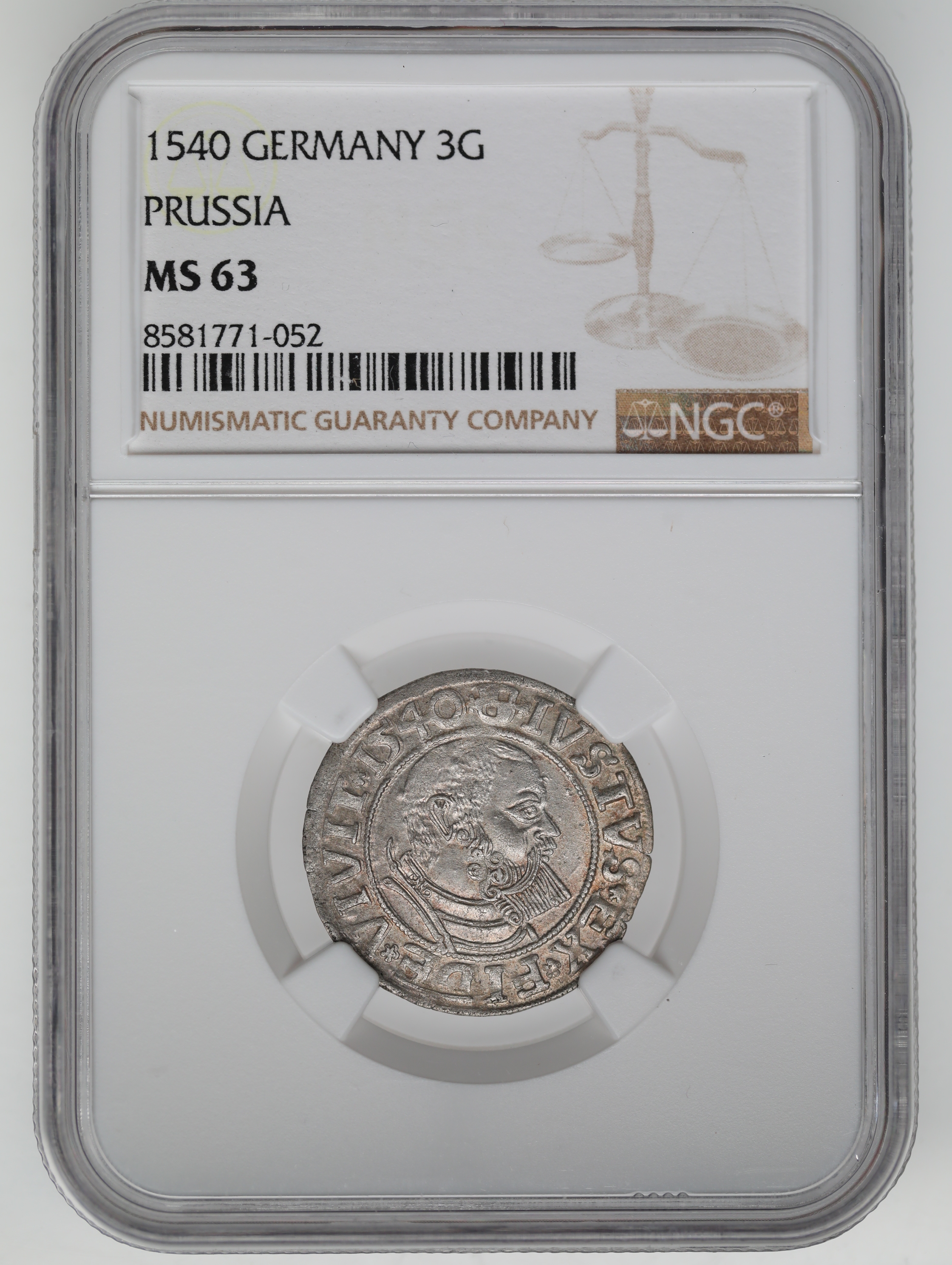 GERMANY. Albercht I. 3 Groschen. 1540. MS63.