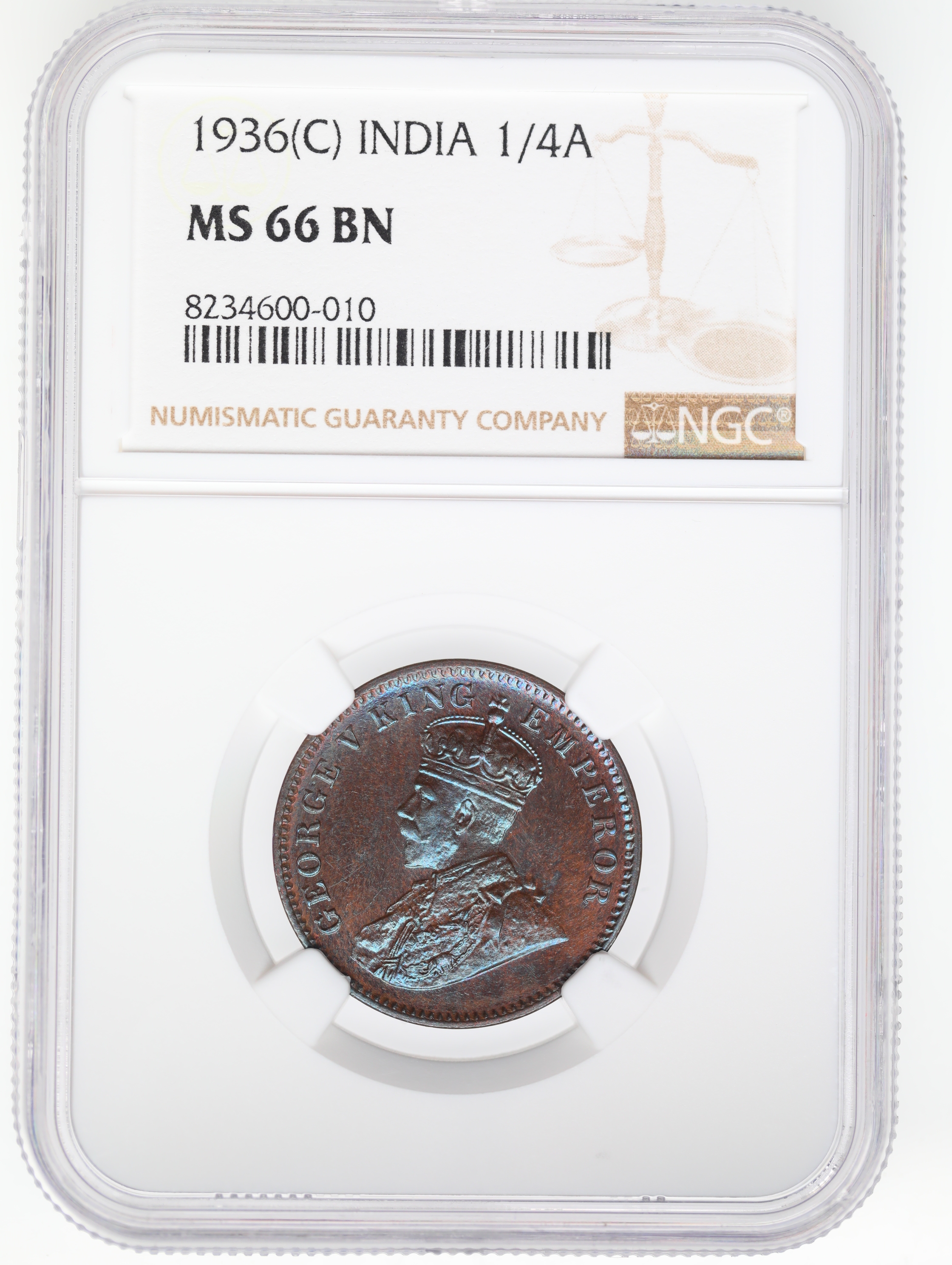 INDIA, BRITISH. George V. 1/4 Anna. 1936-C. MS66.