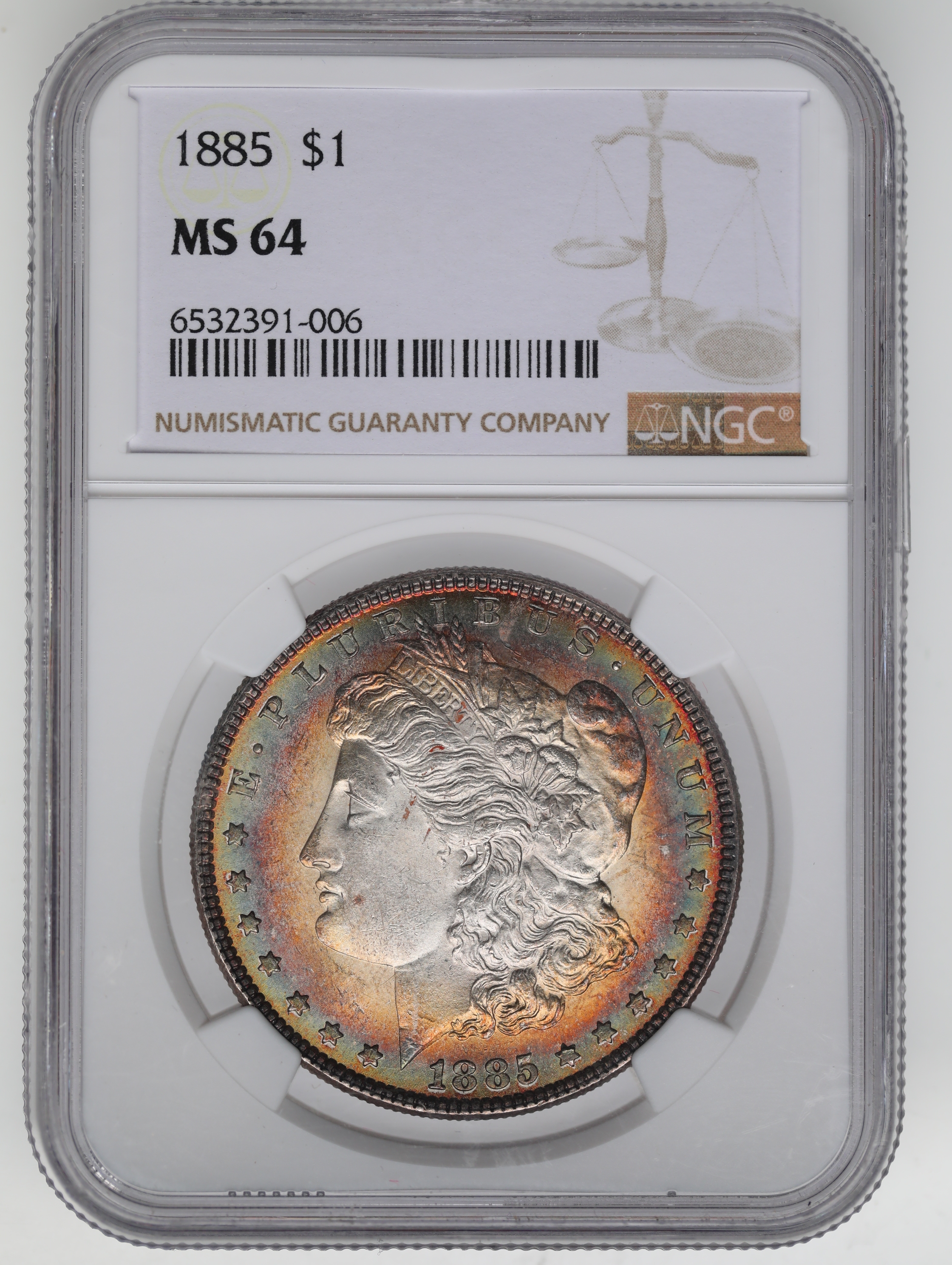 Silver, 26.73 grams, (.900 fine), KM-110, Mesmerizing chromatic bulls-eye patina. An outstanding piece! https://www.ngccoin.com/certlookup/6532391-006/64/