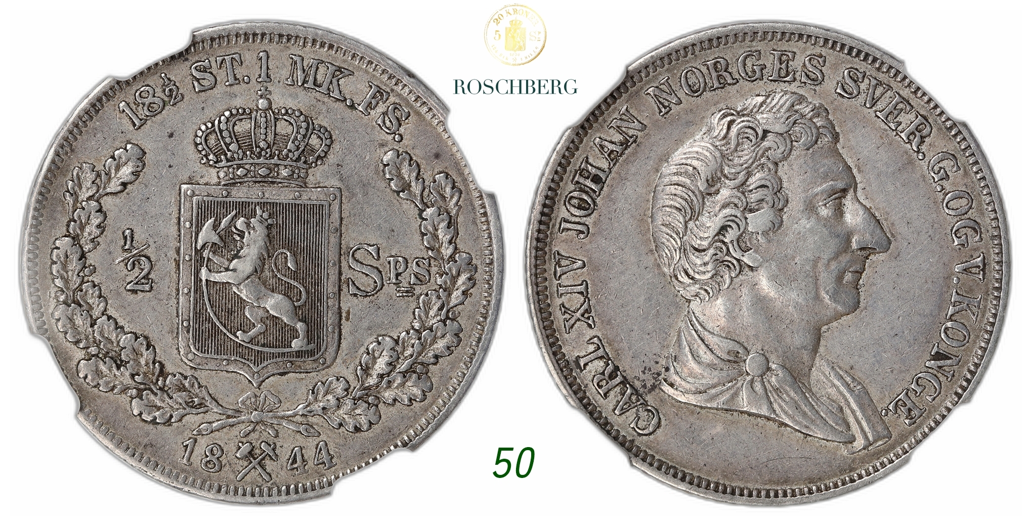 NORWAY. Carl XIV Johan. 1/2 Speciedaler 1844.