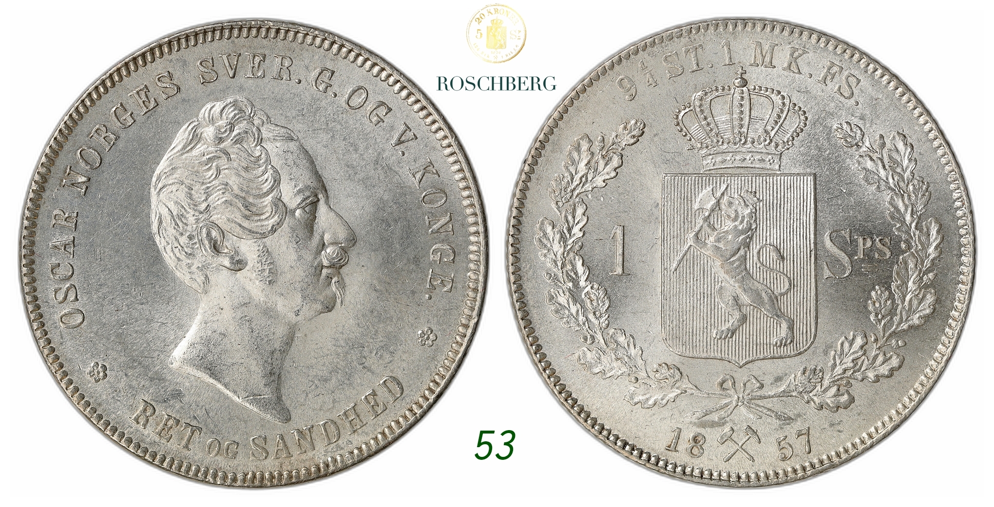 NORWAY. Oscar I. 1 Speciedaler 1857.