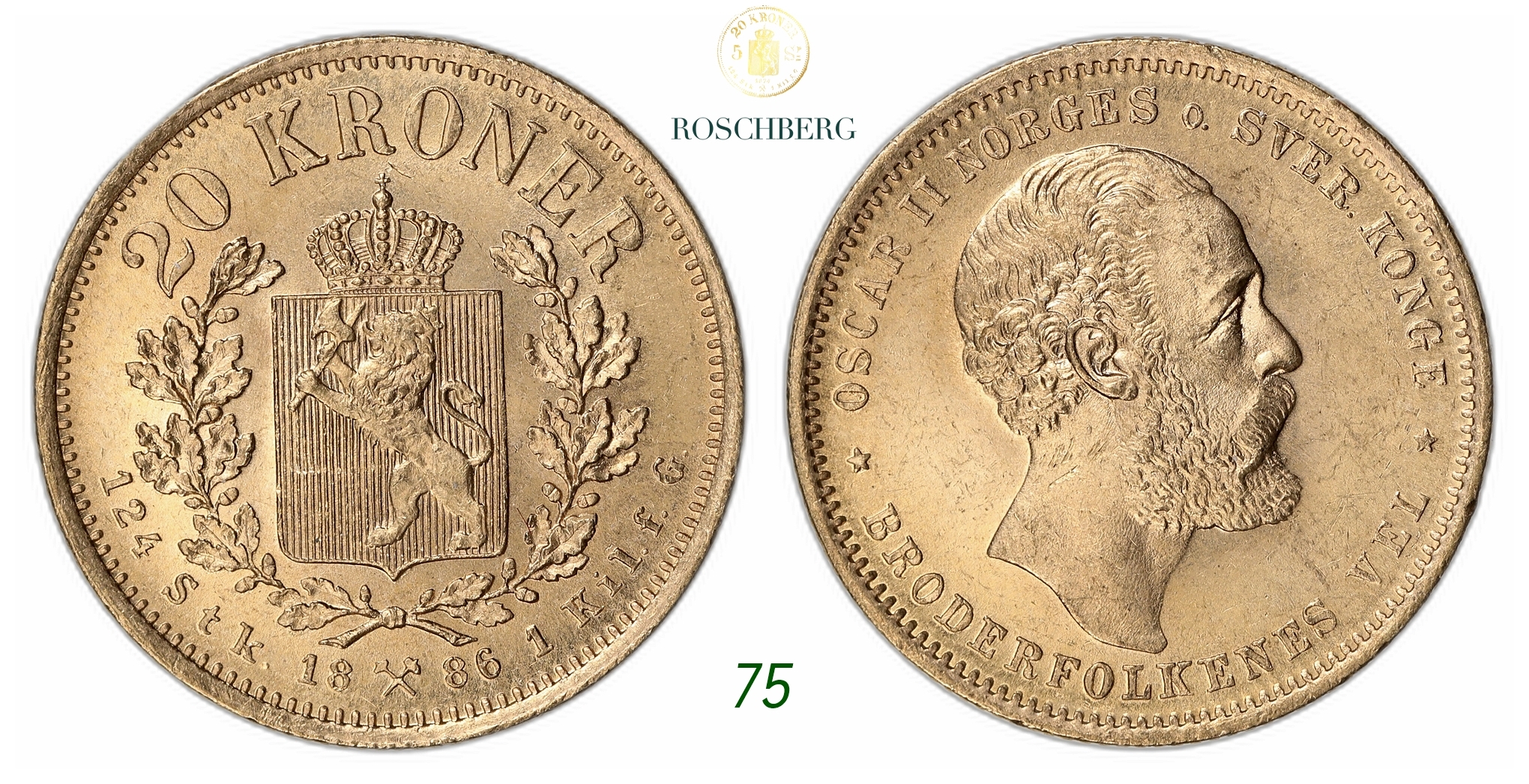 NORWAY. Oscar II. 20 Kroner Gold 1886.