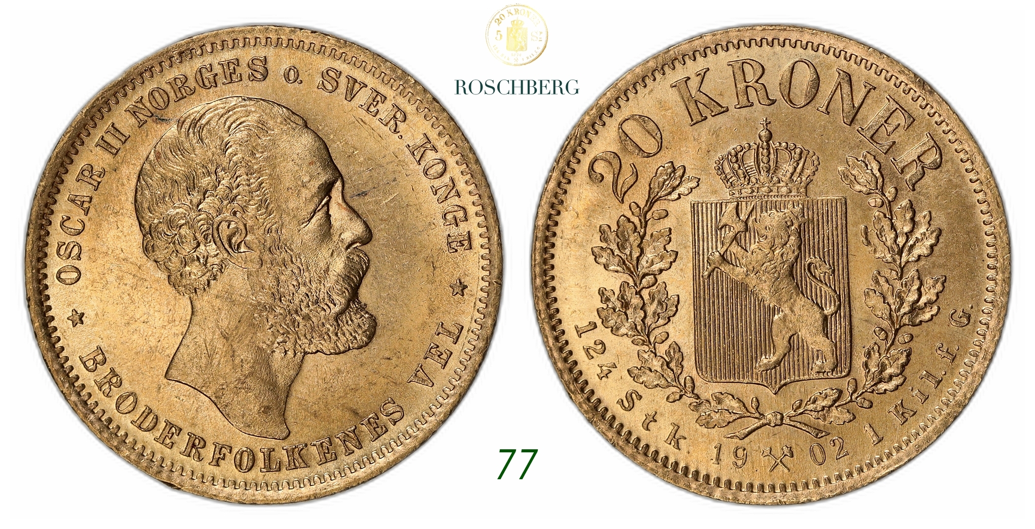 NORWAY. Oscar II. 20 Kroner Gold 1902.
