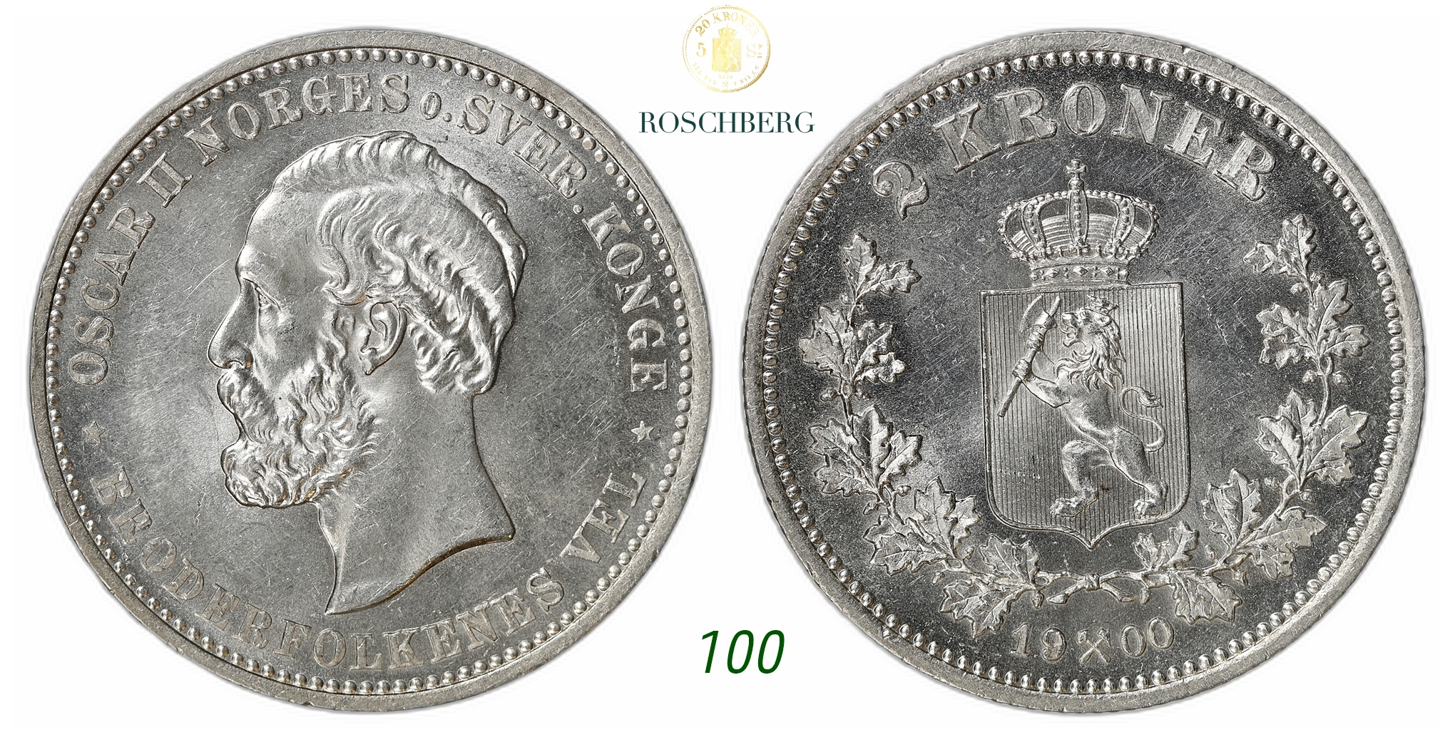 NORWAY. Oscar II. 2 Kroner 1900.