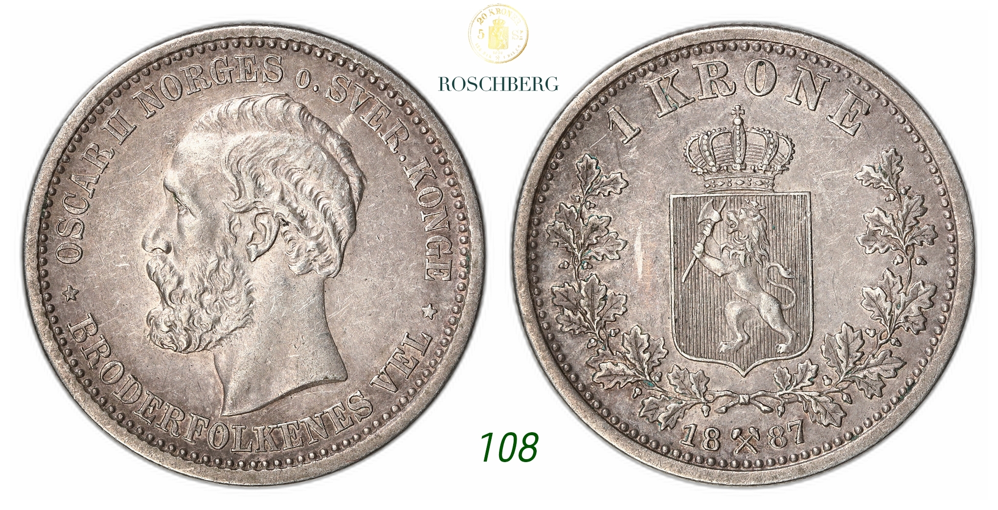 NORWAY. Oscar II. 1 Krone 1887.