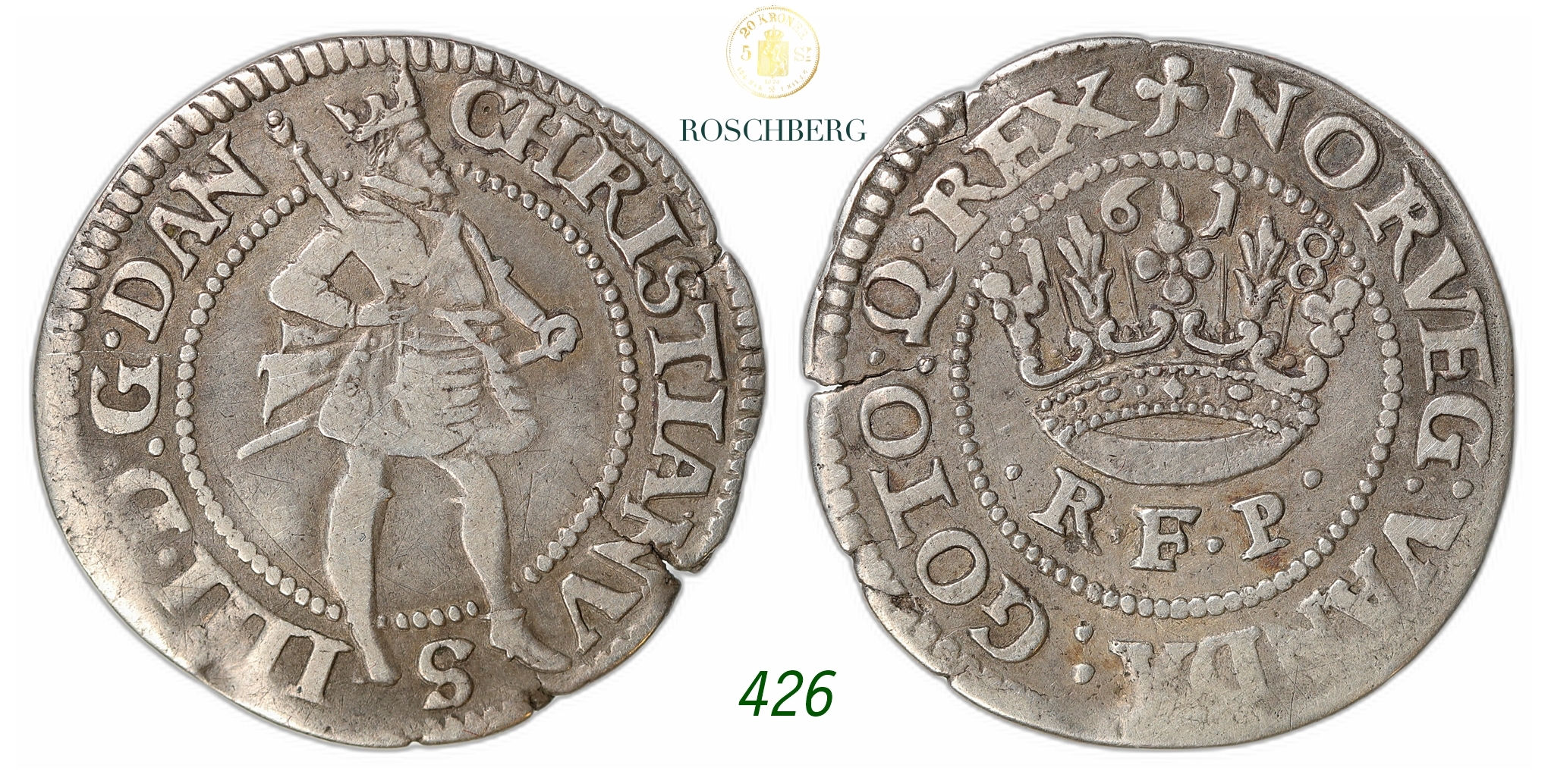 DENMARK. Christian IV. 1/4 Krone 1618.
