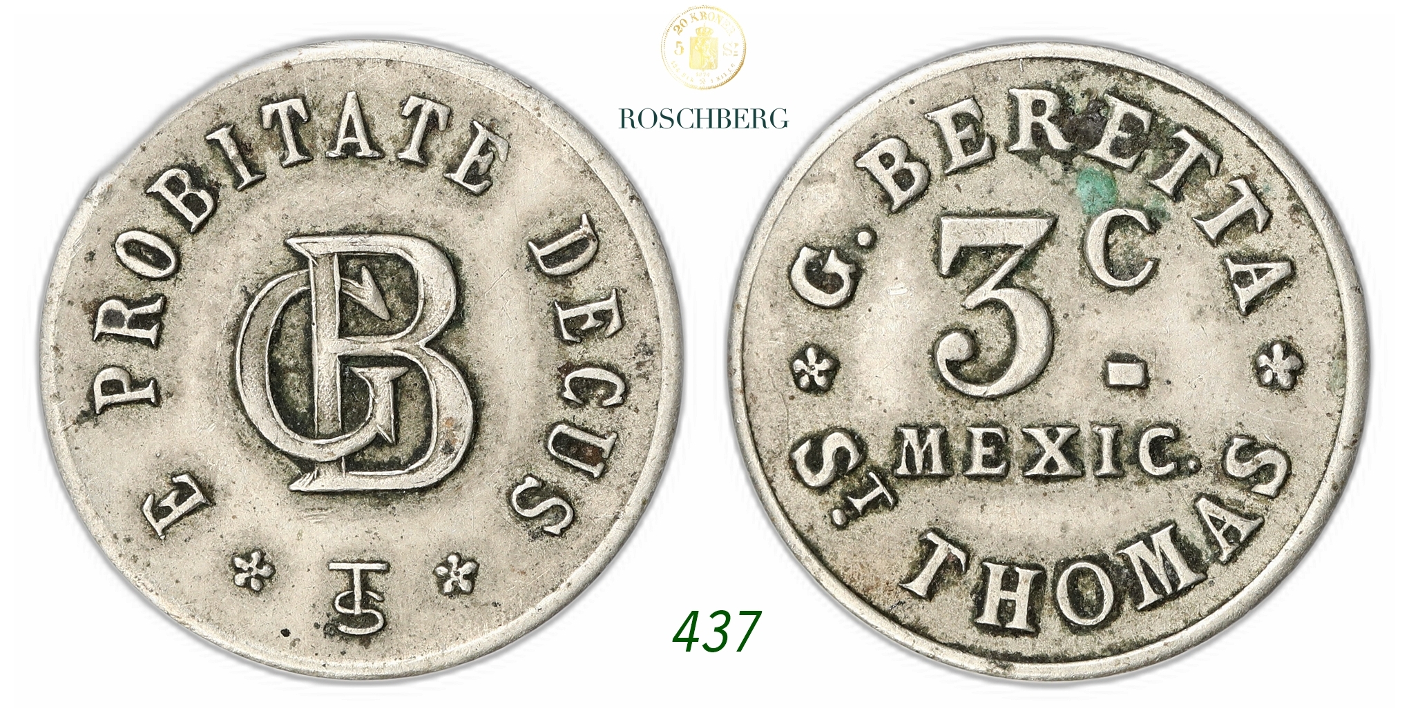 DENMARK, Danish West Indies. G. Beretta. 3 Cent Token ND.
