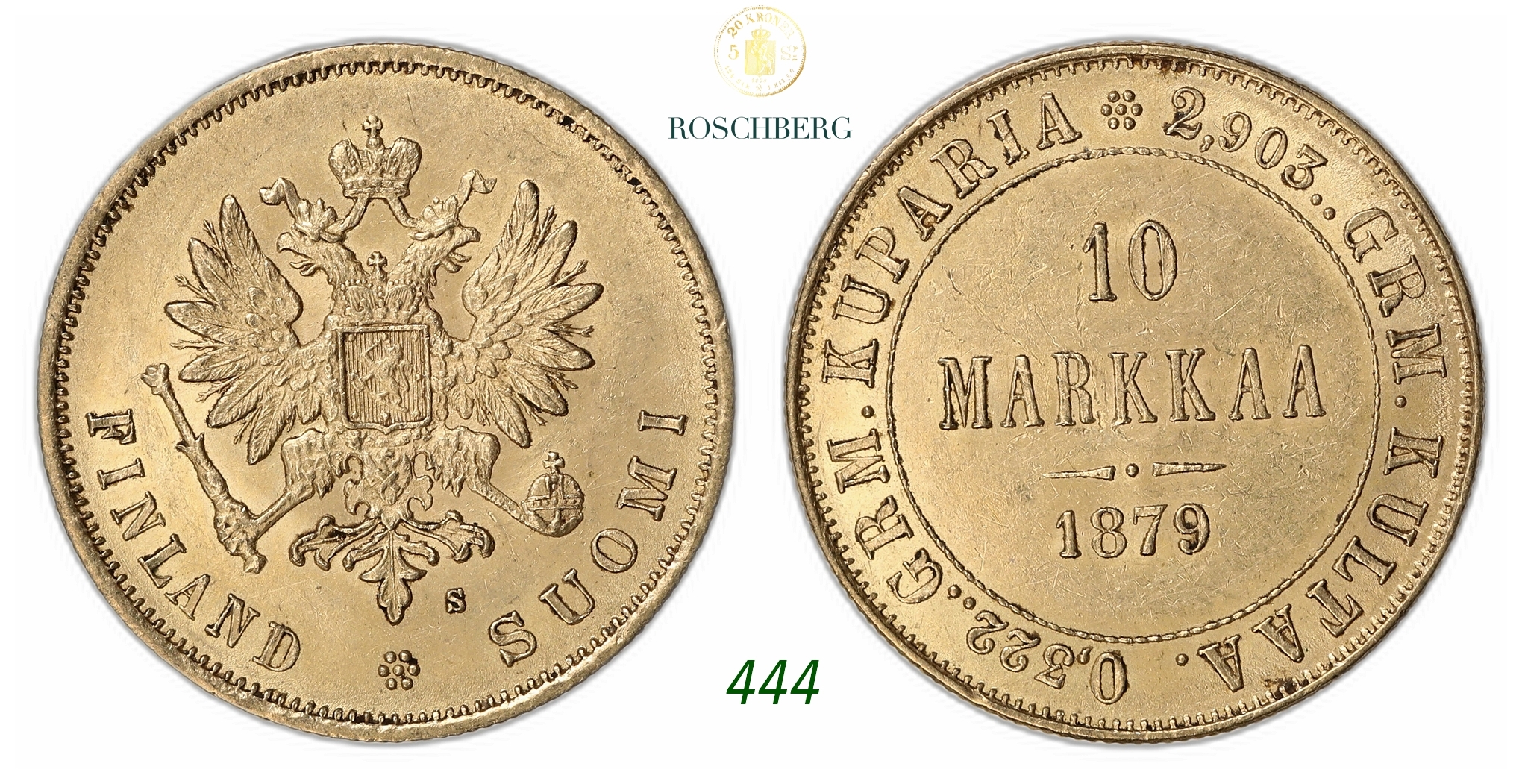 FINLAND. Alexander II. 10 Markkaa Gold 1879-L.